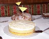 Den Vanillepudding mit dem Bananensaft zubereiten, etwas abkühlen lassen und auf den Bananen verteilen.Die Sahne mit dem Sahnesteif schlagen, auf den Pudding geben, darüber Eierlikör verteilen. Mit etwas zurückbehaltener Sahne die Torte mit Tuffs verzieren.
