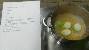 Die Erbsen wieder ins Wasser setzen (Wasseroberfläche ca. 1 cm über den Erbsen), 1 Zwiebel - in 2
