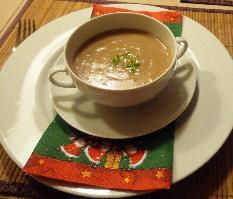 Zum Eindicken geben wir die Sahne hinzu. Nach Belieben kann die Suppe mit Mehlschwitze oder Soßenbinder eingedickt werden.