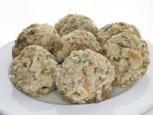 2. Anschließend das Salz, Pfeffer, eine Prise Muskat, die feingehackte Petersilie und die vorher versprudelten Eier gut mit der eingeweichten Semmelmasse unterkneten.
